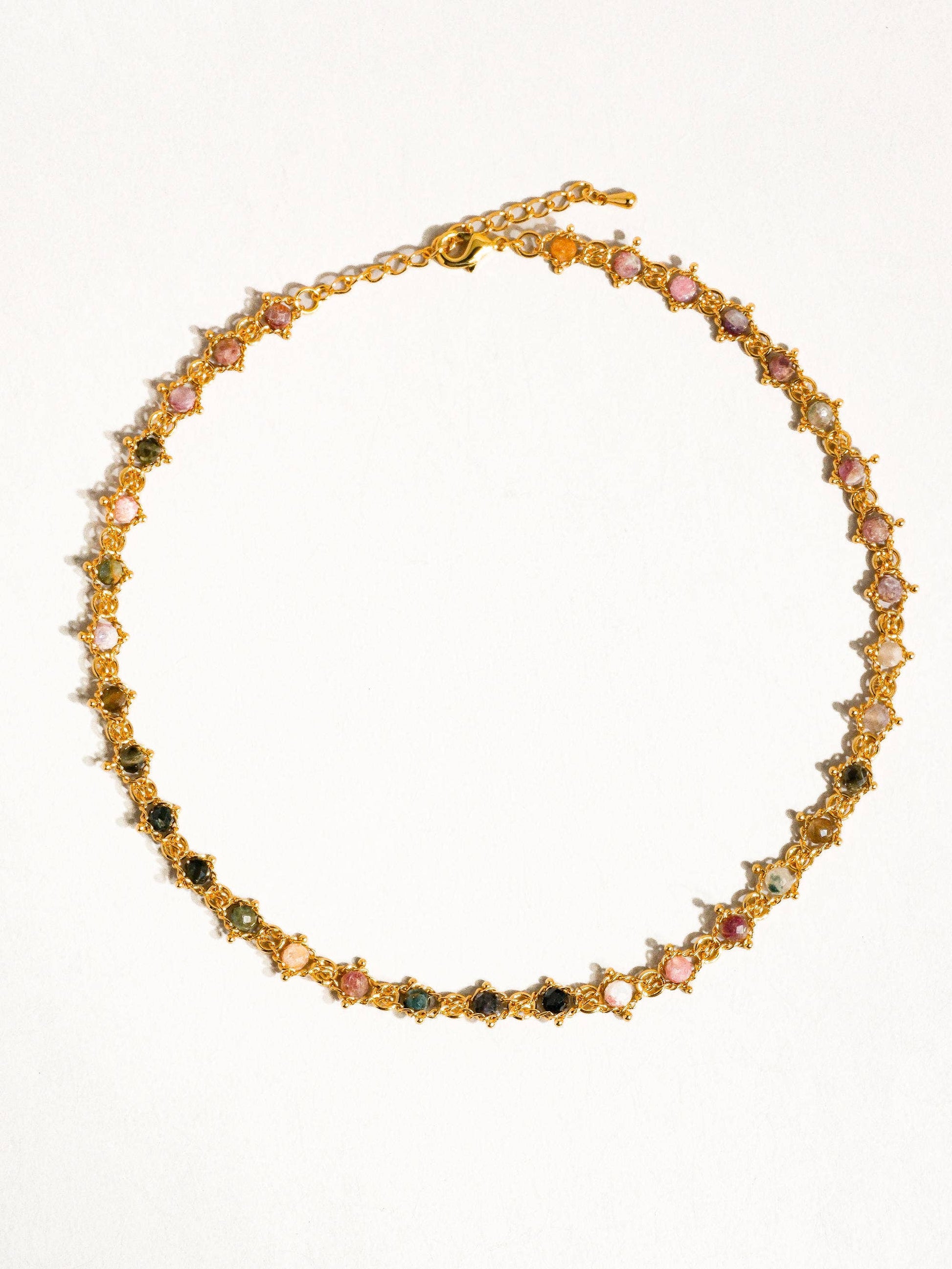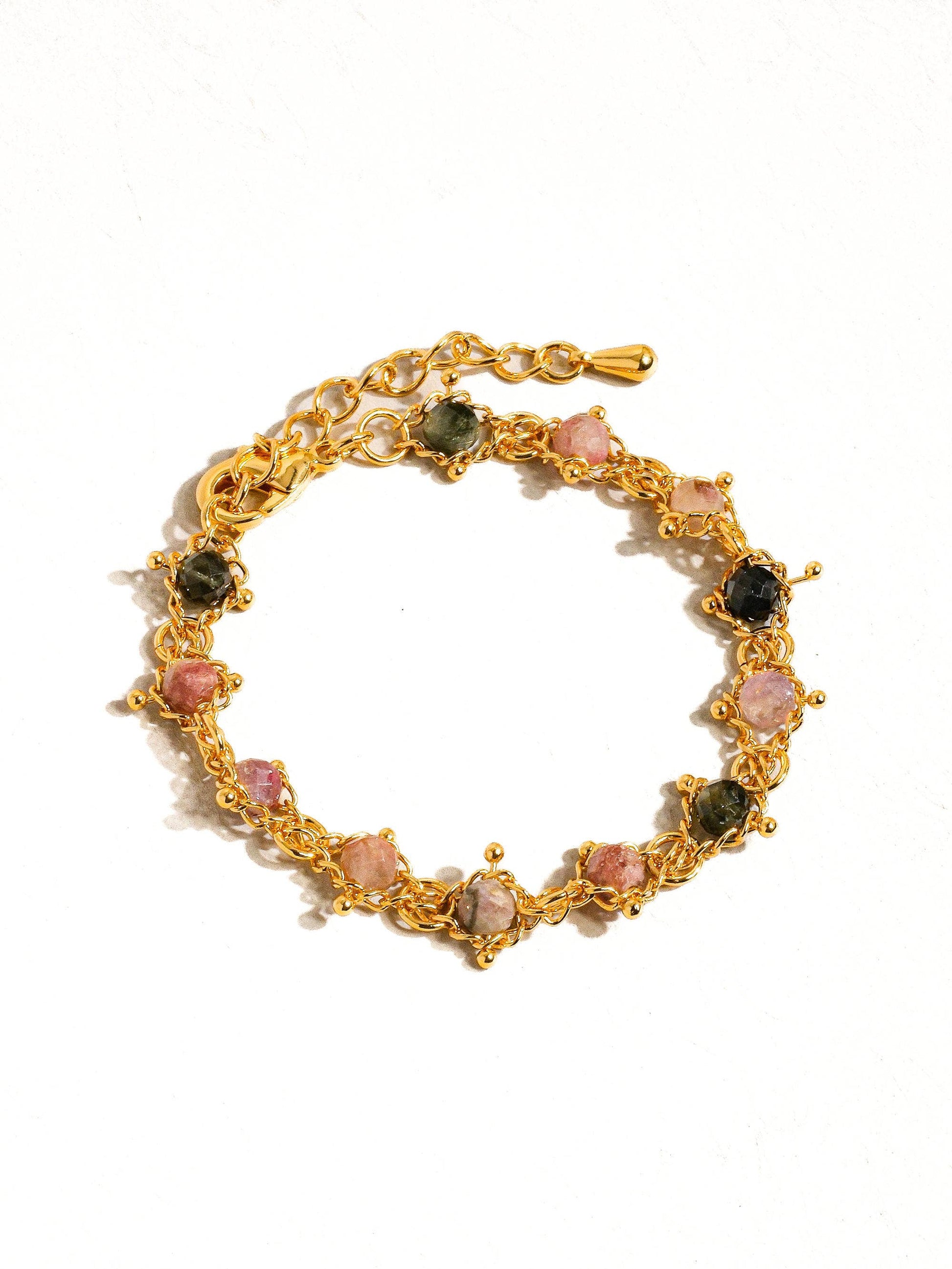 Each multicolor stone is set in 18K gold PVD-plated stainless steel, creating a luminous blend of tones that shift effortlessly from day to night.